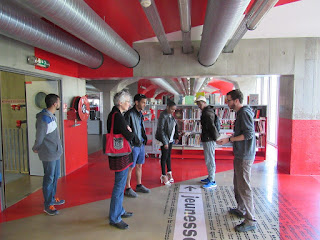 Pour remédier à cette situation, nous avons été chaleureusement accueillis vendredi le 20 mai 2016 par Olivier Fournier à la médiathèque Malraux à Strasbourg. La visite guidée a commencé par un petit précis de l'histoire du lieu (ancien bâtiment industriel du Port de Rhin). Les jeunes ont visité tous les étages, ont appris à se repérer, on vu la richesse des collections de livres, journaux, magaziner, BD, livres audio...